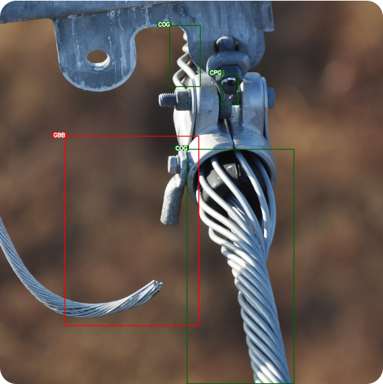 Utilize accurate AI models for RGB and thermal imagery to identify assets and detect anomalies like damaged poles and crossarms and overheated transformers.